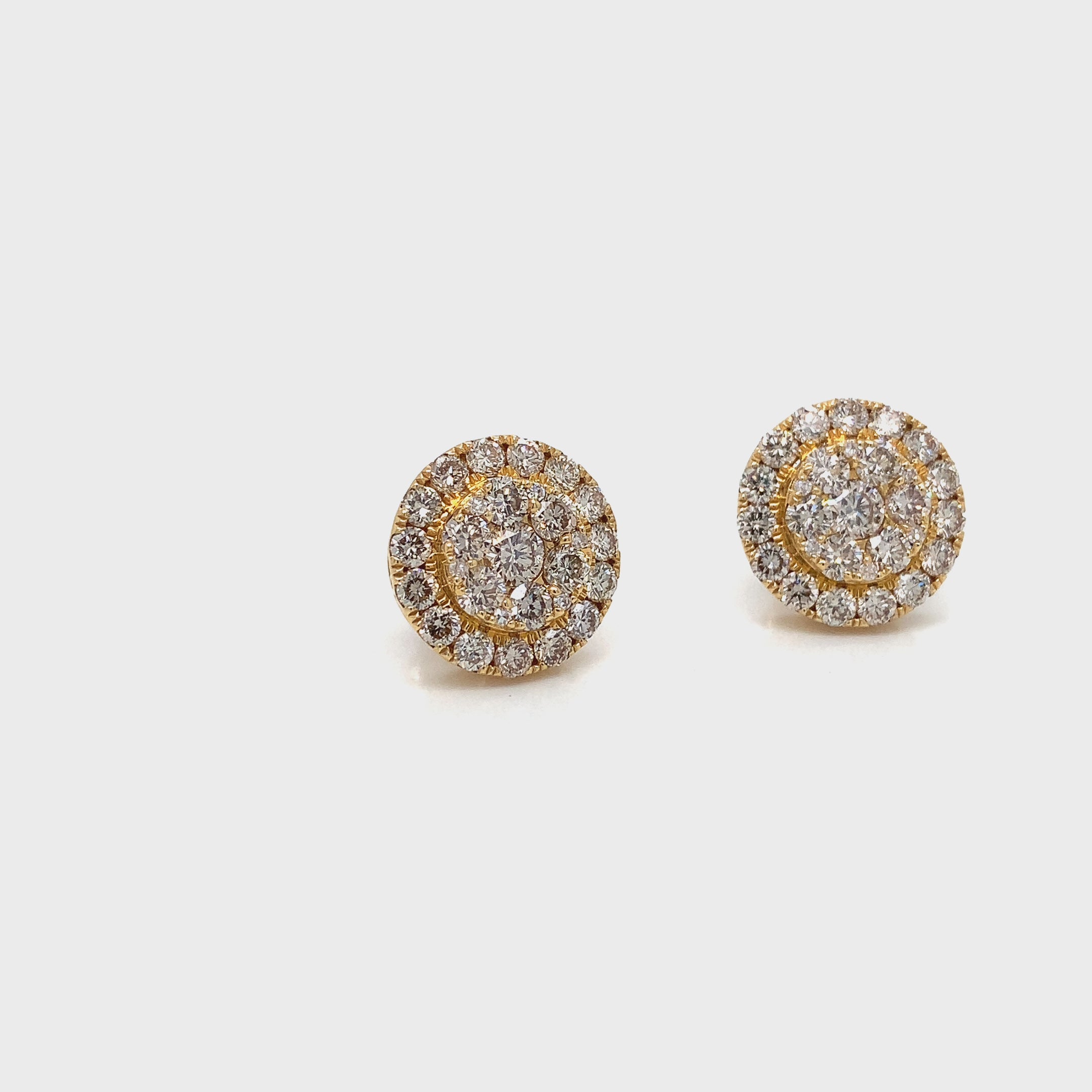 Yellow Gold Stud Earrings with Diamond Only Stones
