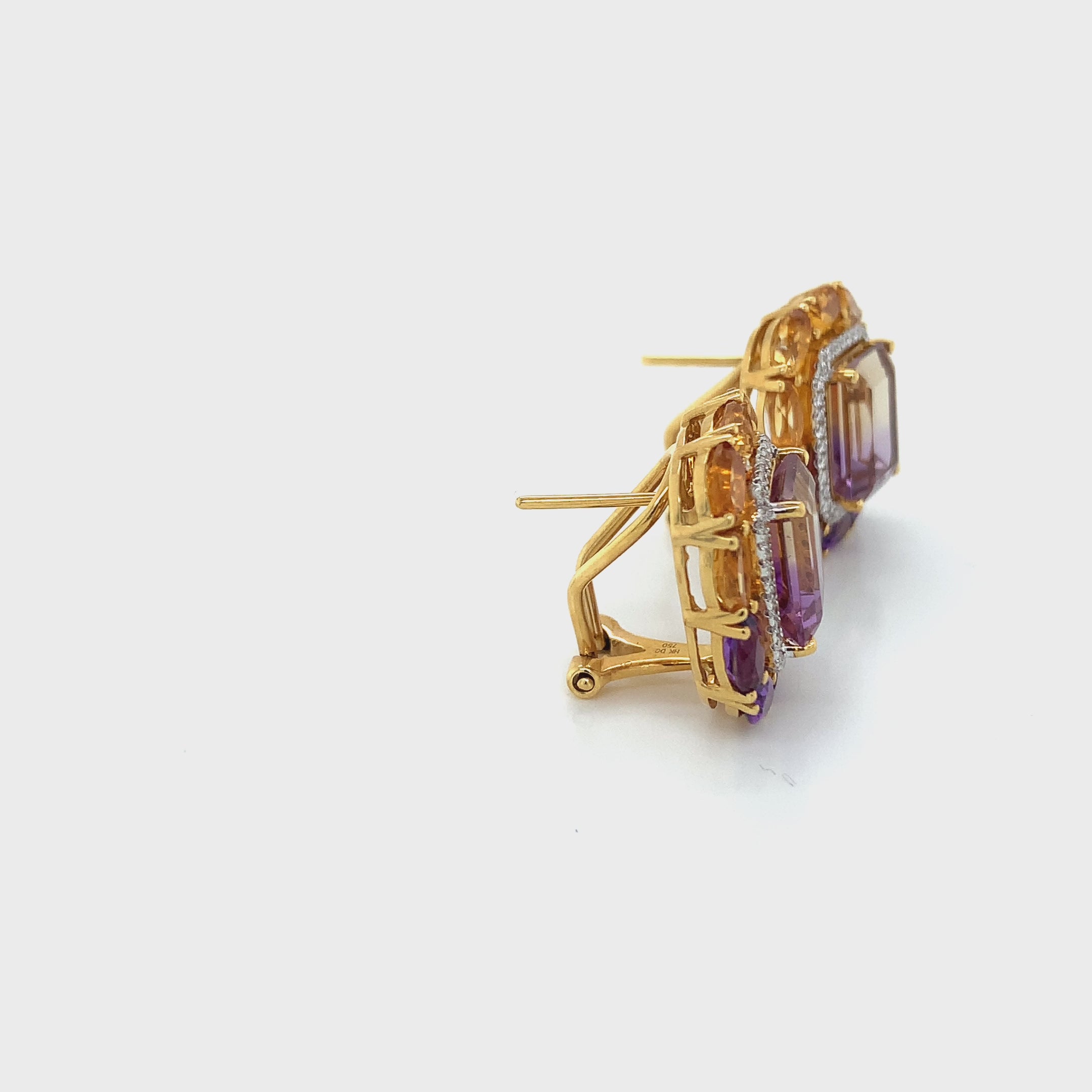 Yellow Gold Stud Earrings with Amethyst, Citrine Stones