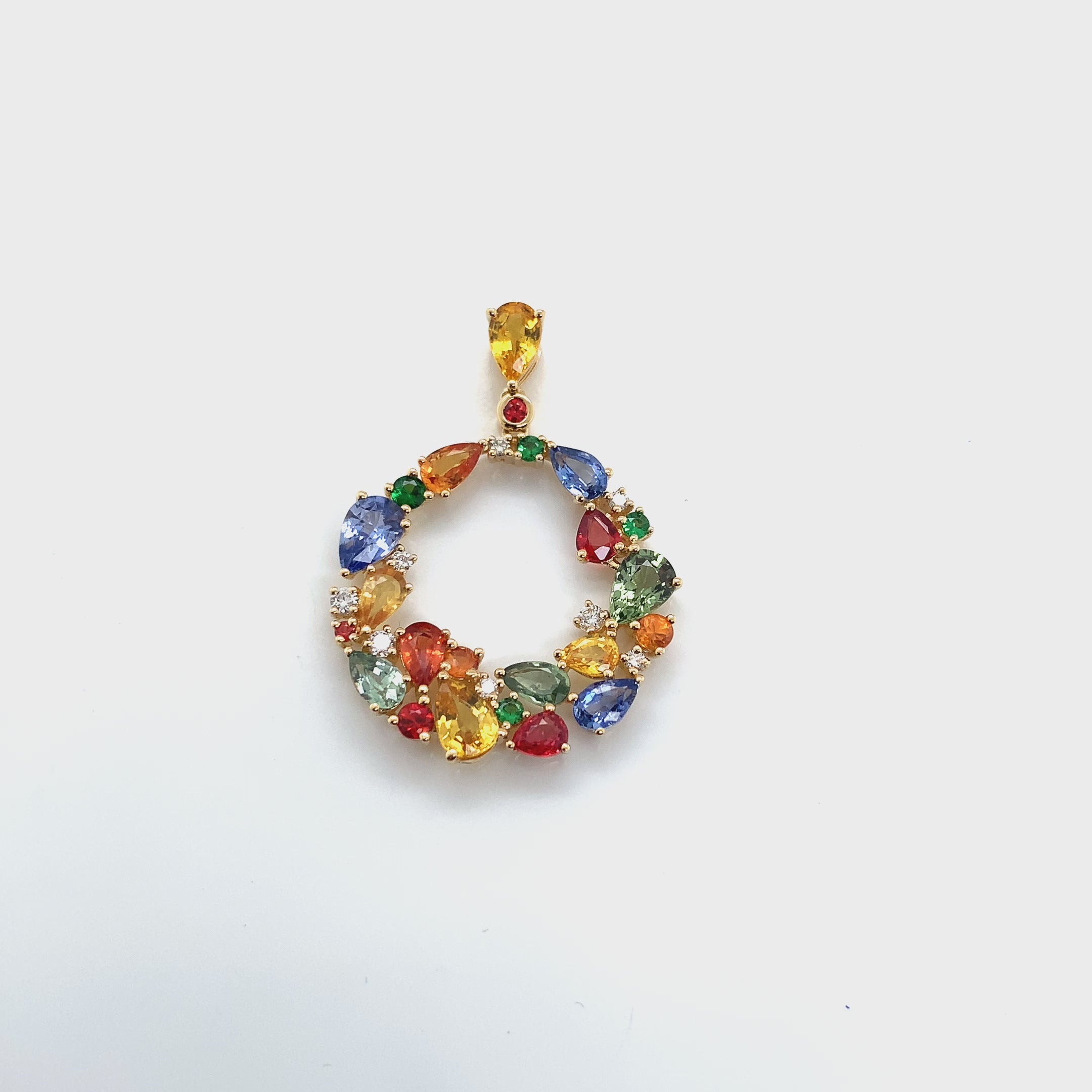 Yellow Gold Pendant Necklace with Diamond, Sapphire Stones