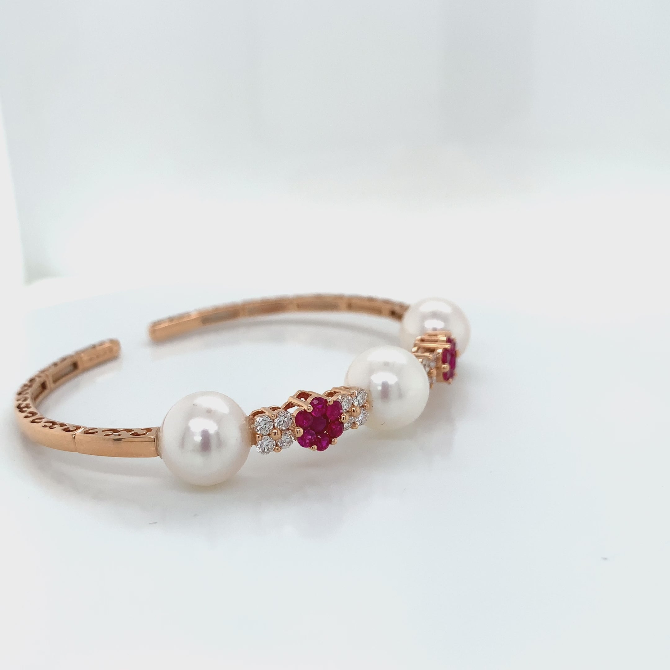 Yellow Gold Bangle Bracelet with Diamond, Pearl Stones
