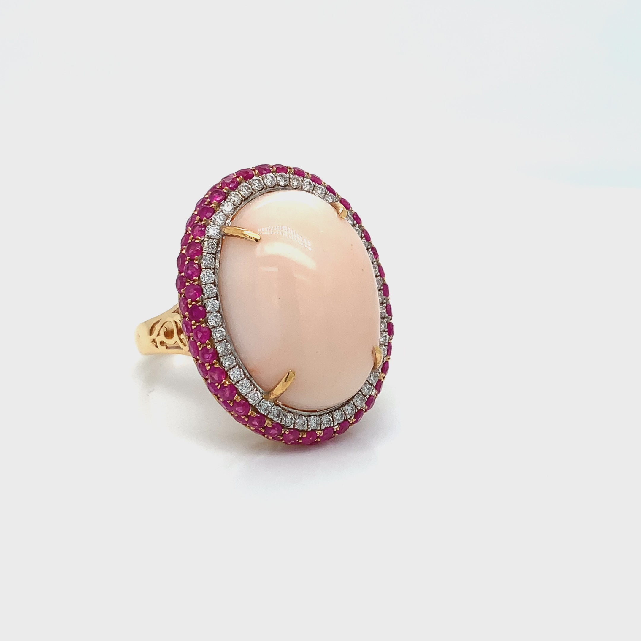 Yellow Gold Ring with Coral, Diamond, Ruby Stones
