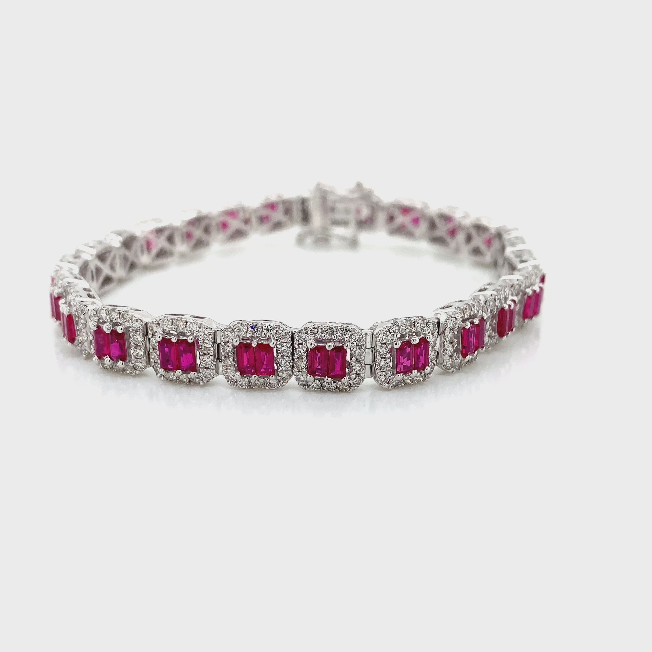 White Gold Tennis Bracelet with Diamond, Ruby Stones